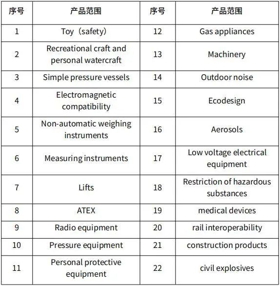 2.UKCA覆盖了医疗设备、铁路互通、建筑产品和民用爆炸物(见表2序号19-22),但须受英国官方特殊规则的管制。